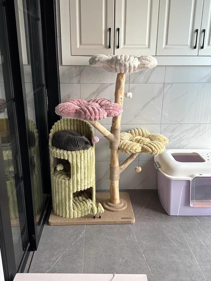 Crafted from natural fruitwood, the main support frame of this cat tree is naturally formed, ensuring high stability. Free from harmful substances, it’s moisture-resistant and insect-proof, providing a safe and durable haven for your cat.