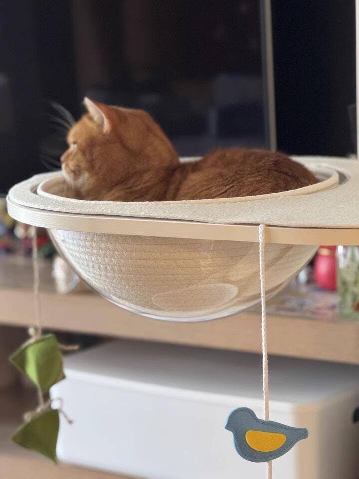 Yes. The clear acrylic pod is made from thick, high-quality material that supports cats of all sizes. It’s securely attached to the structure, providing a stable and safe lounging space for climbing or sunbathing.