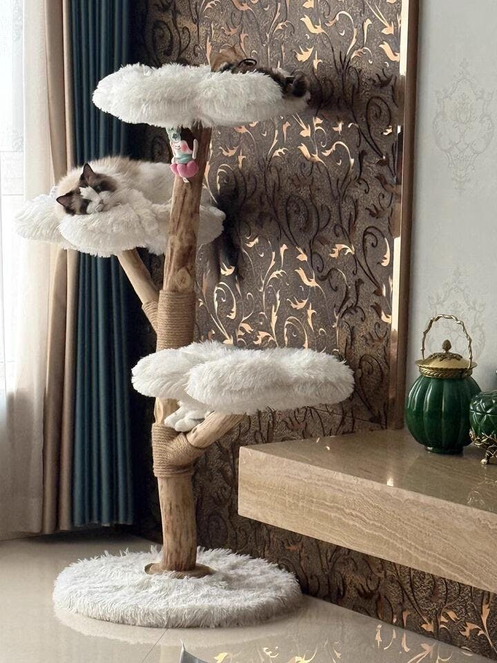 Strategically placed scratching posts on this cat tree cater to your catβs natural instincts, promoting healthy scratching habits and offering an outlet for their energy.