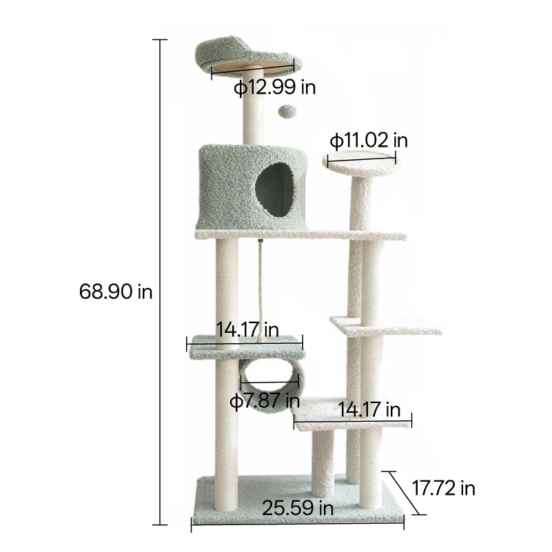 This cat tree has tall platforms, cozy hideouts, and interactive toys. It is strong, safe, and comfortable. Your cats can play, climb, and rest all day.