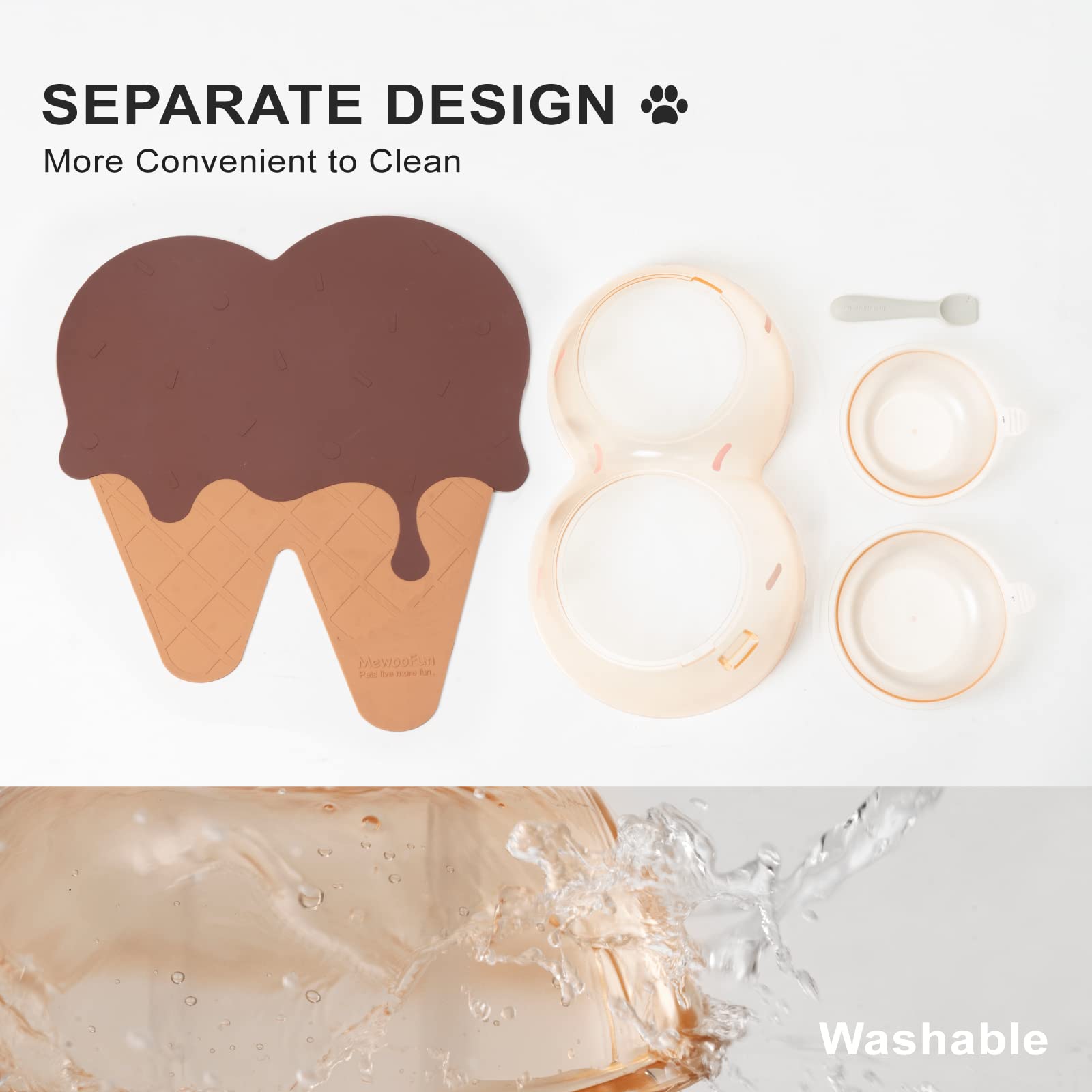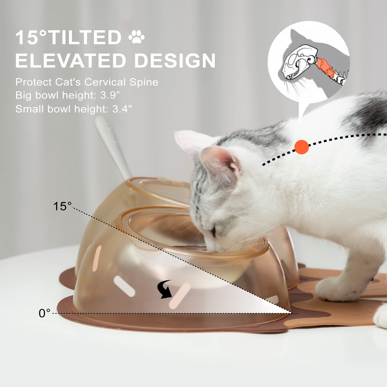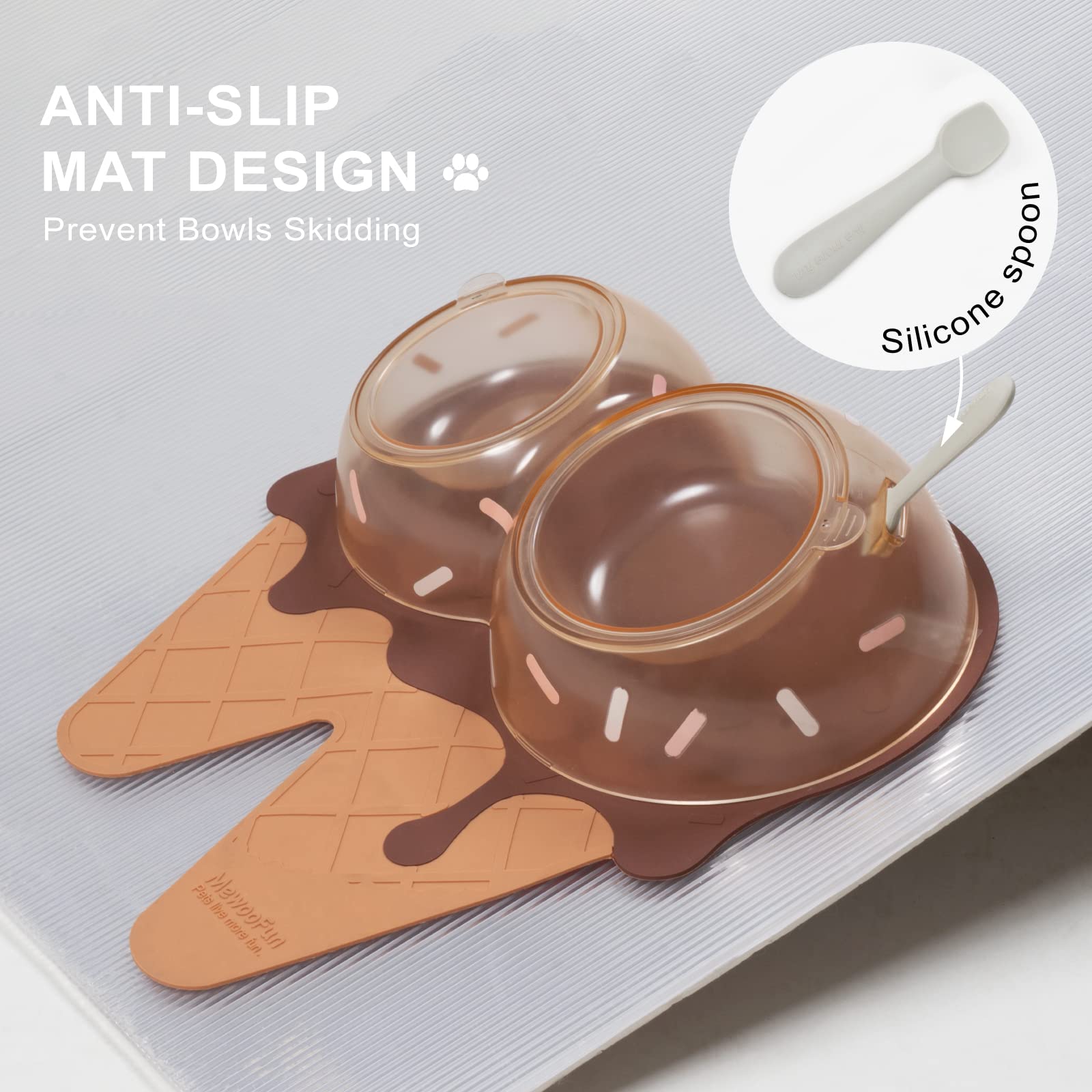 Includes: Dual Tilted Bowls + Non-slip Mat + Silicone Spoon