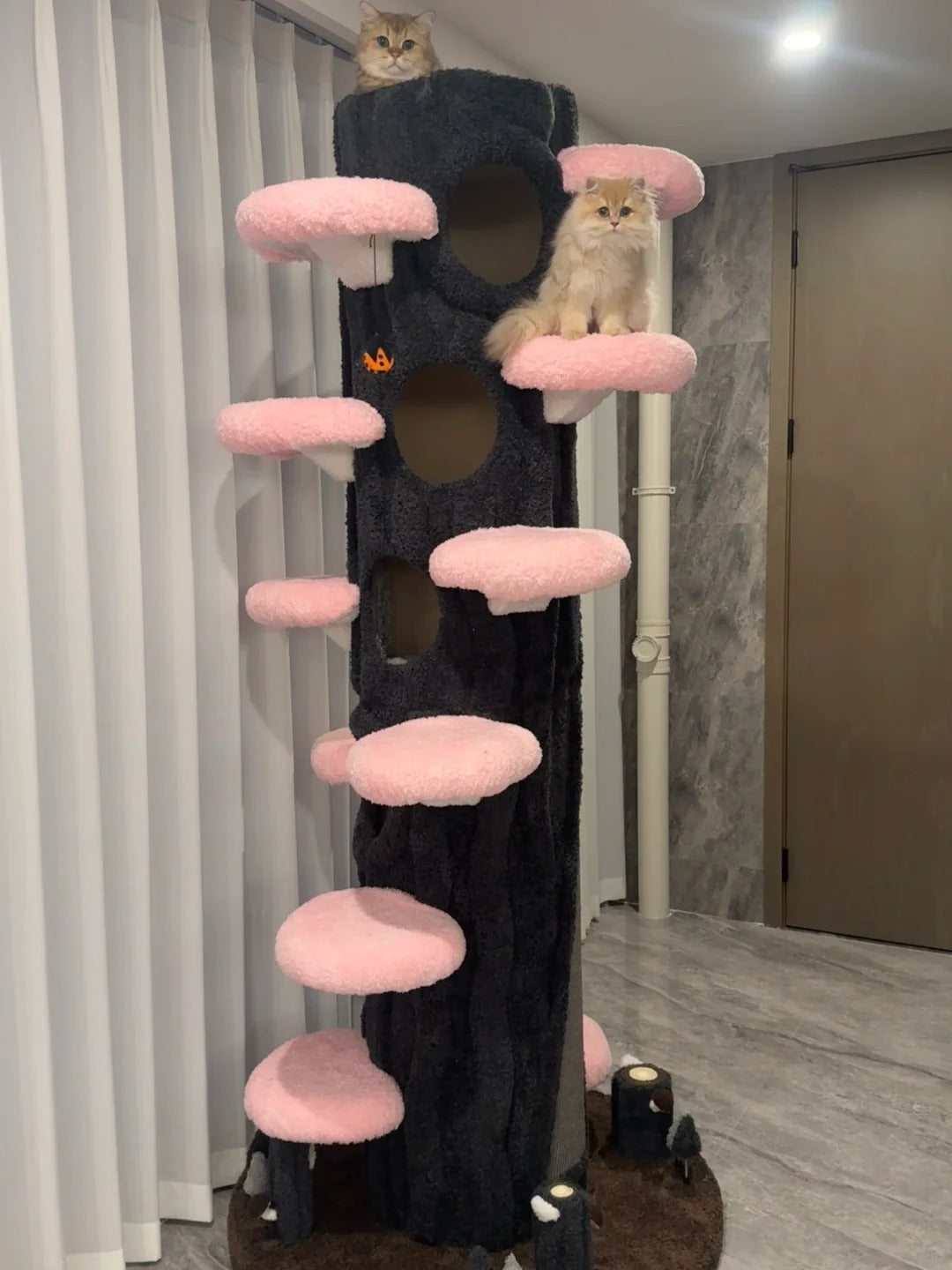 Absolutely. The cat tree is made from natural solid wood and plush fabric, all non-toxic and safe for indoor cats. The integrated scratching posts use durable surfaces designed to protect claws and provide enrichment.