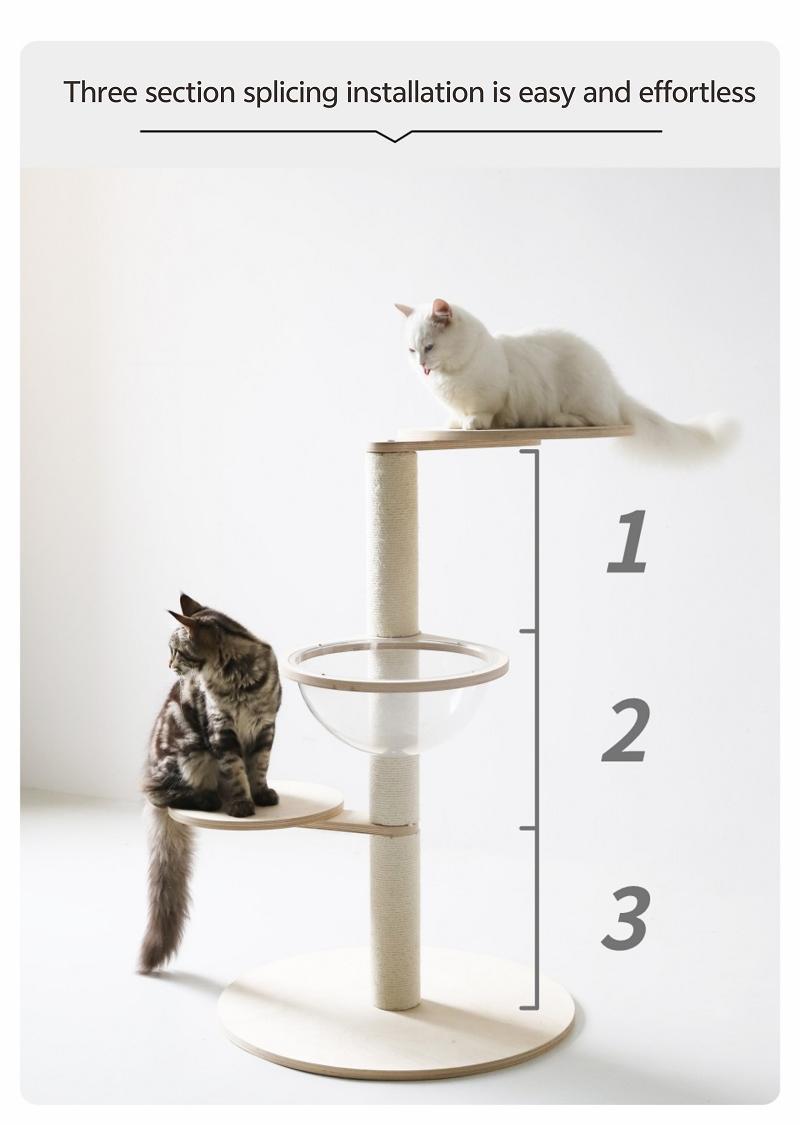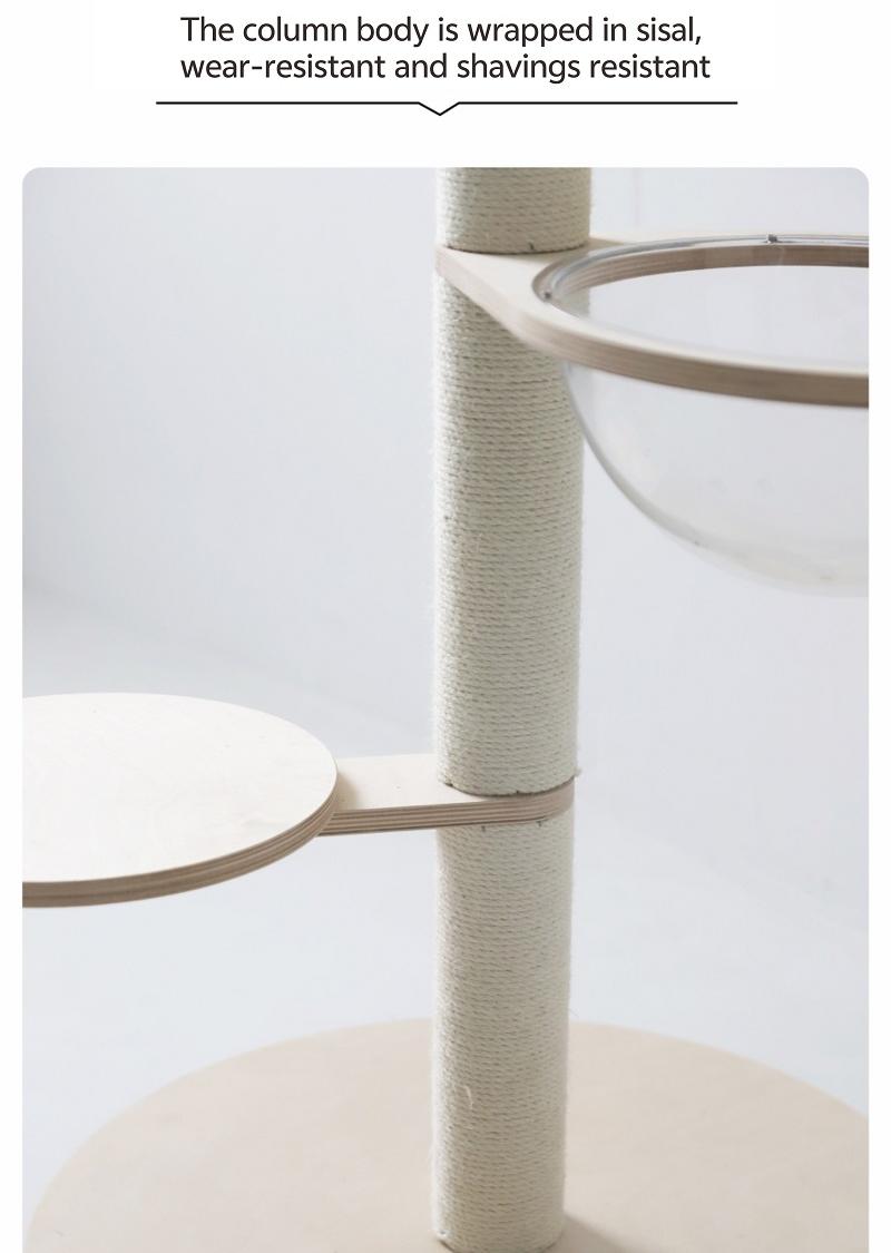The transparent capsule cat bed adds a modern touch and gives your cat a cozy, elevated spot to relax and observe the surroundings.