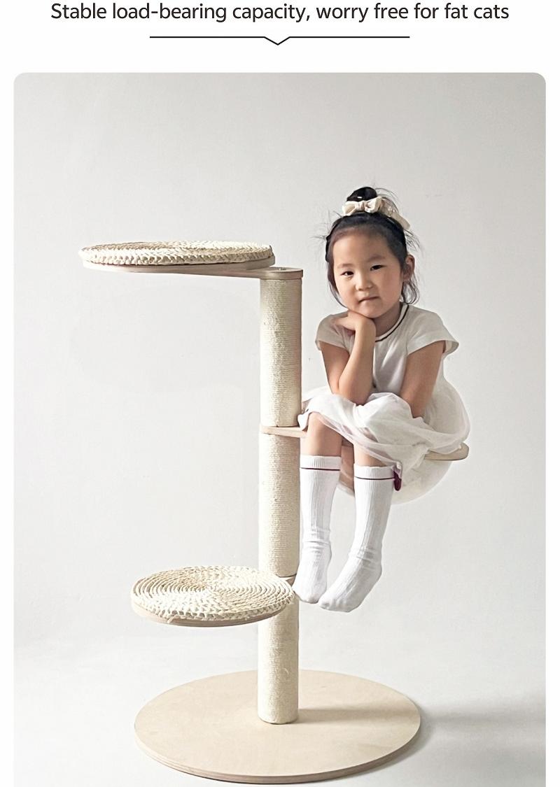 Built to last! This robust cat tree is so sturdy, it can even hold a child safely in its pod, showcasing its exceptional stability and durable construction.
