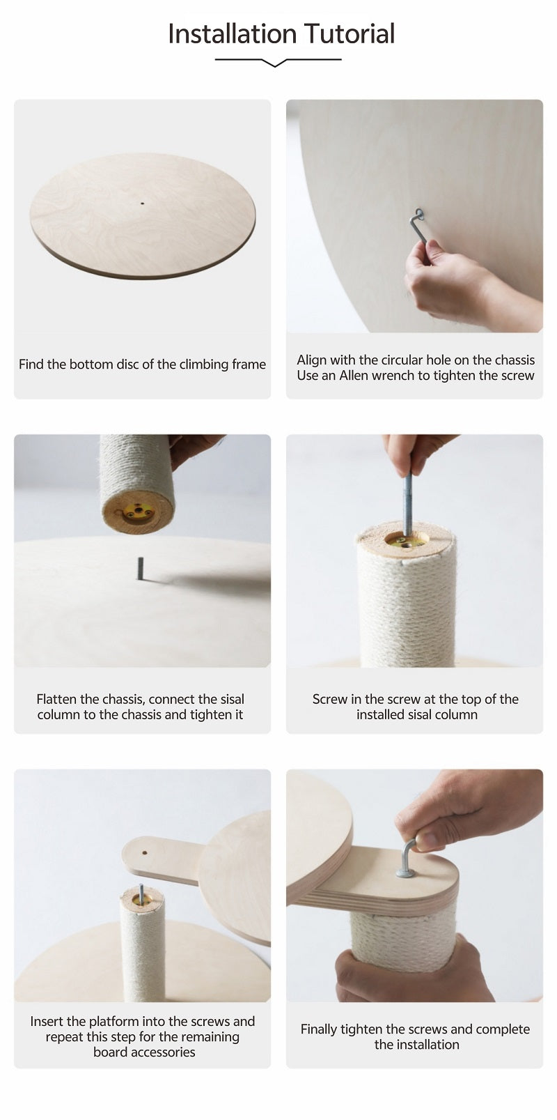 The cat tree features a three-part interlocking design that requires no tools. You can assemble it quickly and securely in just a few minutes.