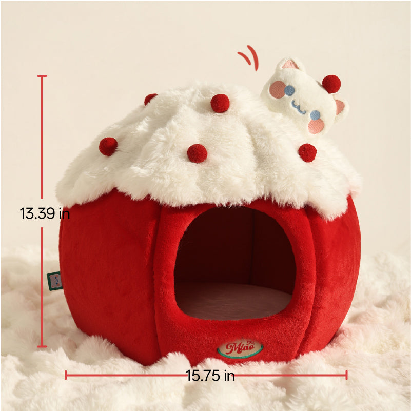 Snowball & Strawberry Cat Cave Bed β Soft & Cozy