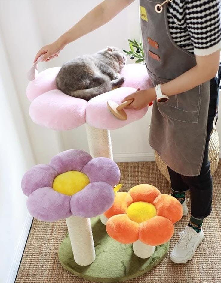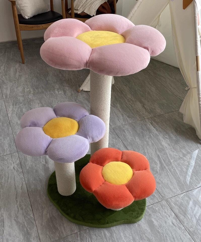 The base is reinforced with high-density particleboard and extra-wide flower platforms to prevent wobbling, even when a 20 lb (9 kg) cat jumps or climbs aggressively. Non-slip pads on the bottom keep it steady on hardwood or tile floors.