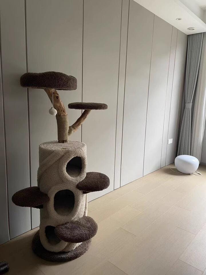 This cat tree features a treehouse design, perfect for multiple cats, also offers scratching, resting, and hiding spots, with a stable, high-quality, safe, and comfortable build.