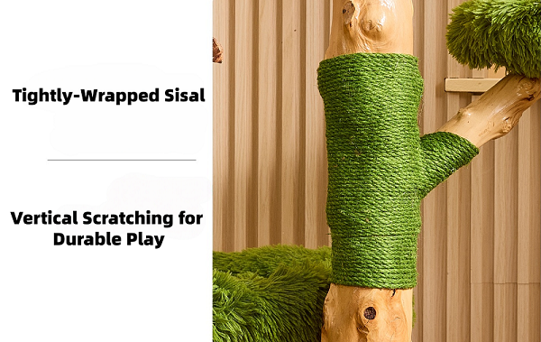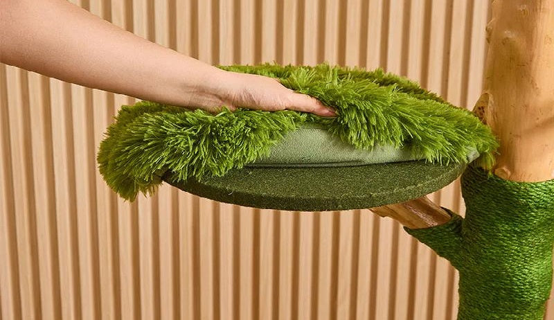 Yes. Made from high-quality wood and reinforced natural fruitwood trunks, this cat tree green is built to withstand daily play and clawing, ensuring long-term durability.