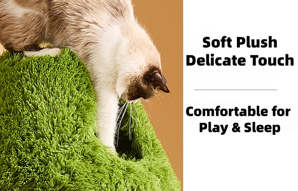 This plush cat tree features an incredibly soft cat cave and a comfortable cat bed, offering your cat a perfect place to rest.